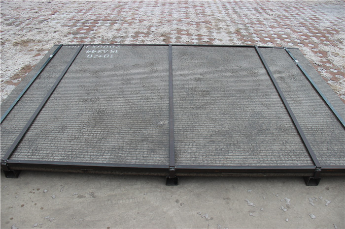 耐磨层中碳化钨含量≥30%,经全自动等离子埋弧熔焊工艺熔敷后,表面硬度可达HRC58-62,是普通Q235钢板的3倍以上。在生料磨衬板应用中,该硬度可有效抵御物料颗粒的切削磨损与冲击磨损——即便面对石英含量达15%的硬质生料,耐磨层表面也仅会产生微量磨损。